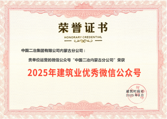 近日,建筑時報社2025年建筑業(yè)優(yōu)秀微信公眾號評選結(jié)果正式揭曉,中國二冶集團內(nèi)蒙古分公司運營的官方微信公眾號成功入選,憑借鮮明的內(nèi)容特色與顯著的傳播成效斬獲此項行業(yè)榮譽。?