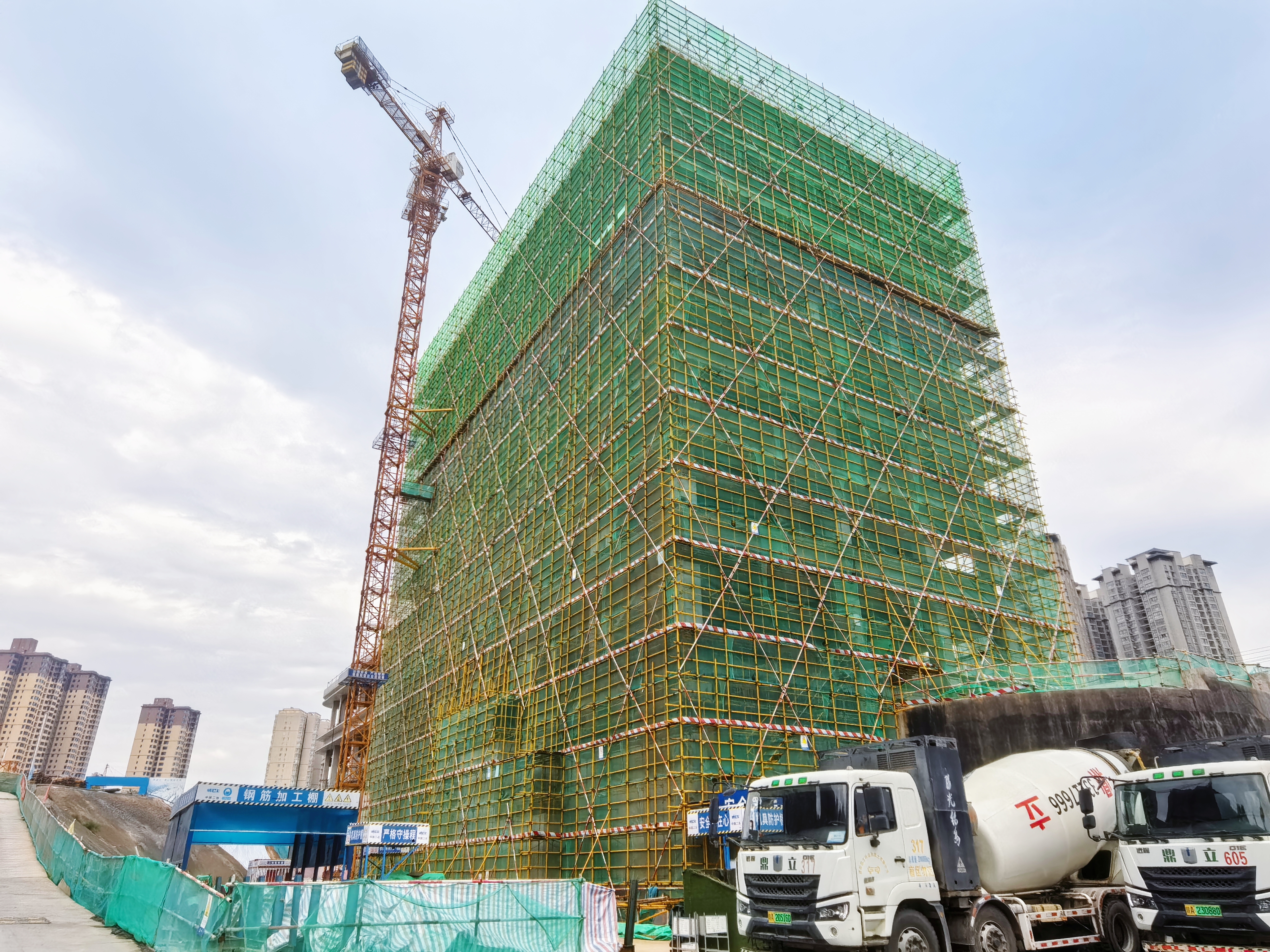 自開工以來,項目部科學部署、統籌推進,嚴格執行國家及行業規范,全面落實安全生產責任制。面對嚴峻的環保管控形勢,項目團隊迎難而上,堅持“高標準、嚴要求、精細化”管理,將綠色施工理念貫穿建設全過程。在全年累計長達80余天的揚塵管控期內,項目不僅積極引入霧炮機、高桿噴淋等先進設備,更以系統化的組織與規范化的作業,確保各項環保措施落實到位,實現了施工進度與生態保護的協同推進。